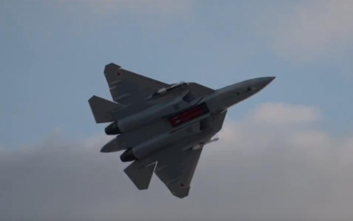 画面首次公开!外媒:苏-57战机打开前部内置弹舱飞行,内载两枚反辐射导弹